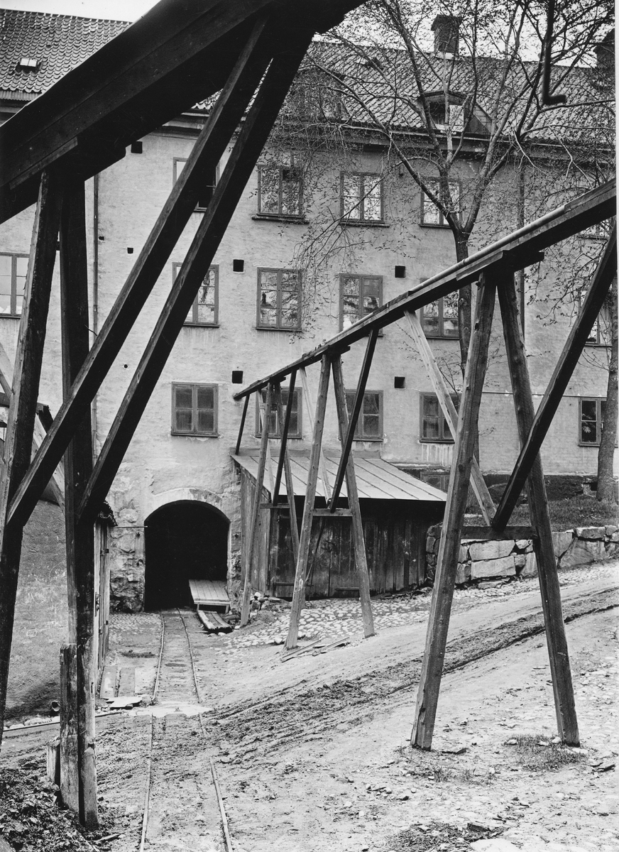Rörstrands Porslinsfabriker. Tunnelgången under gamla kvarn- och slamhuset. Här kördes leran från filterpressarna till lerkällaren.