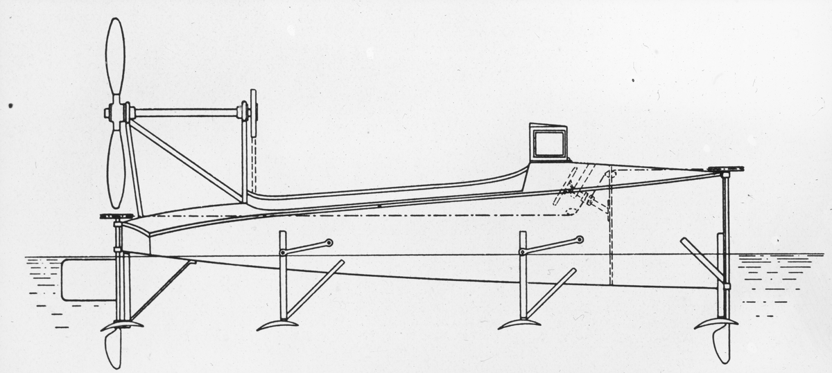 Skioptikonbild med motiv av skiss av båt.