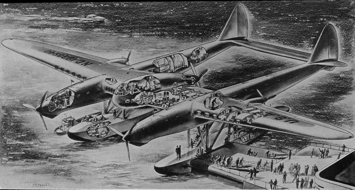 Skioptikonbild med motiv av genomskuret passagerarplan.