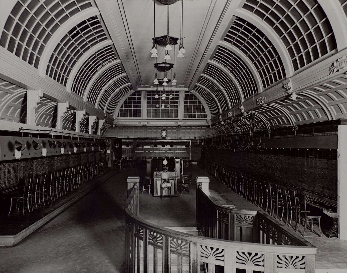 Malmskillnadsgatan 30. En av salarna för lokalexpedition, tidigare Stockholmstelefon. Bild tagen 1930.