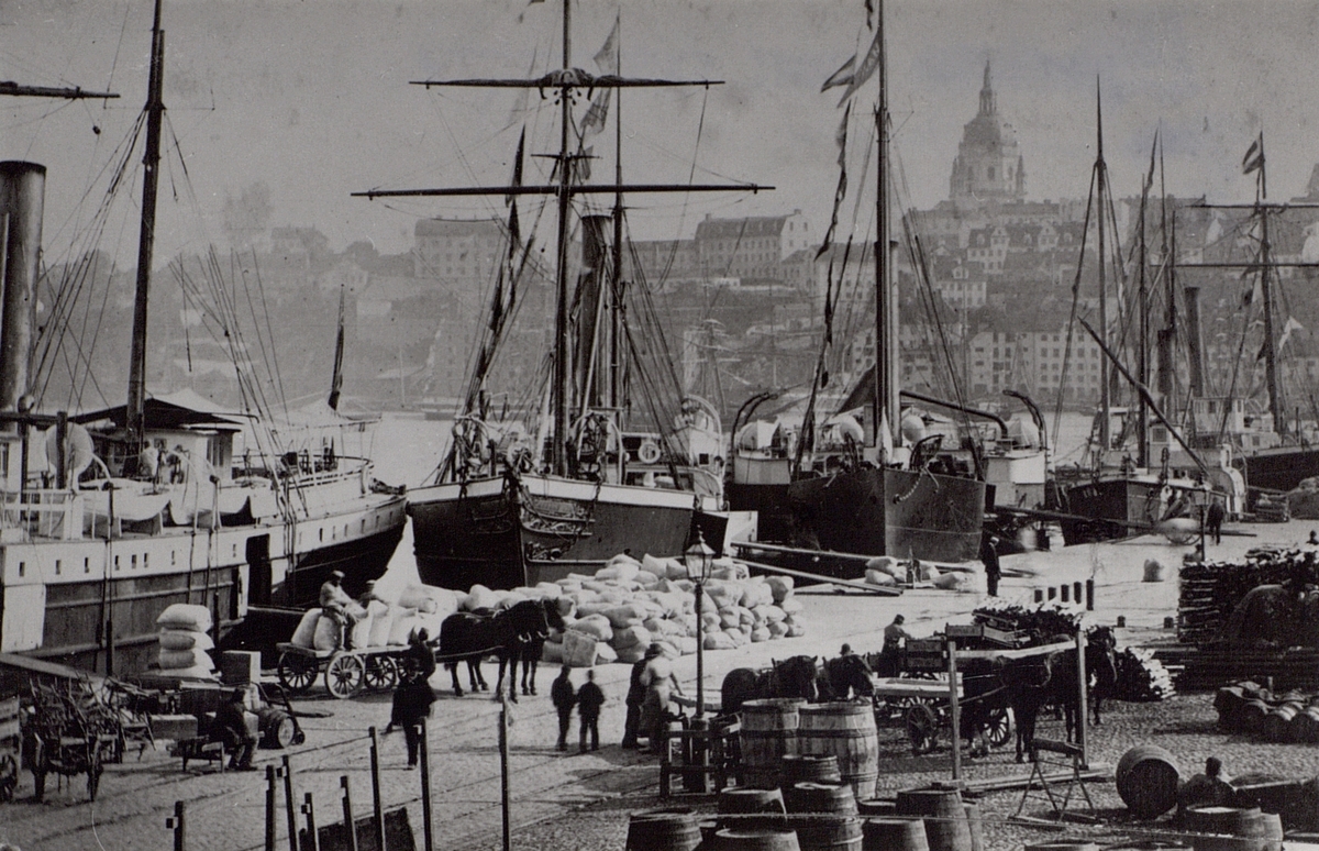 Skeppsbron, Stockholm omkring 1900 ( vy mot Södermalm) .