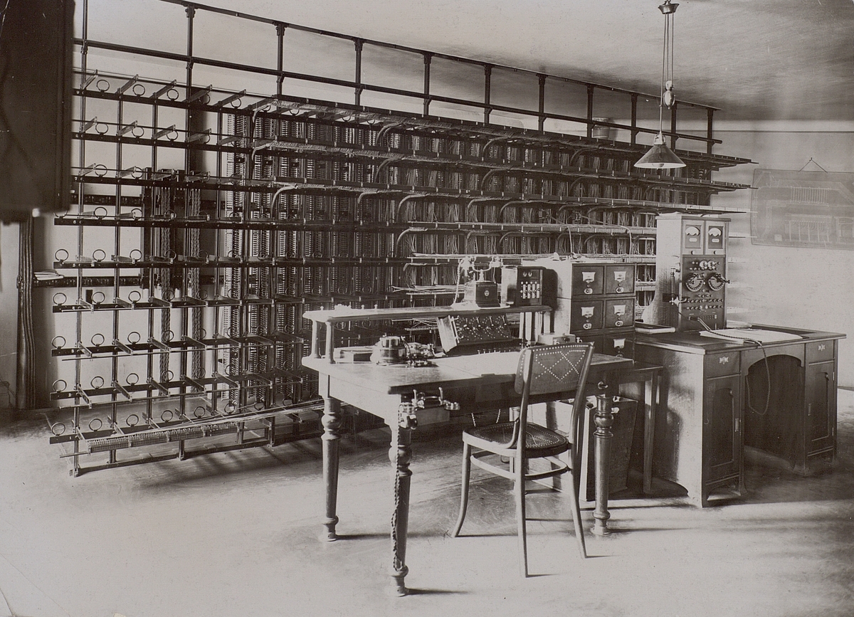Hälsingborg. Omkring år 1908. Korskopplingsstativ och undersökningsbord.