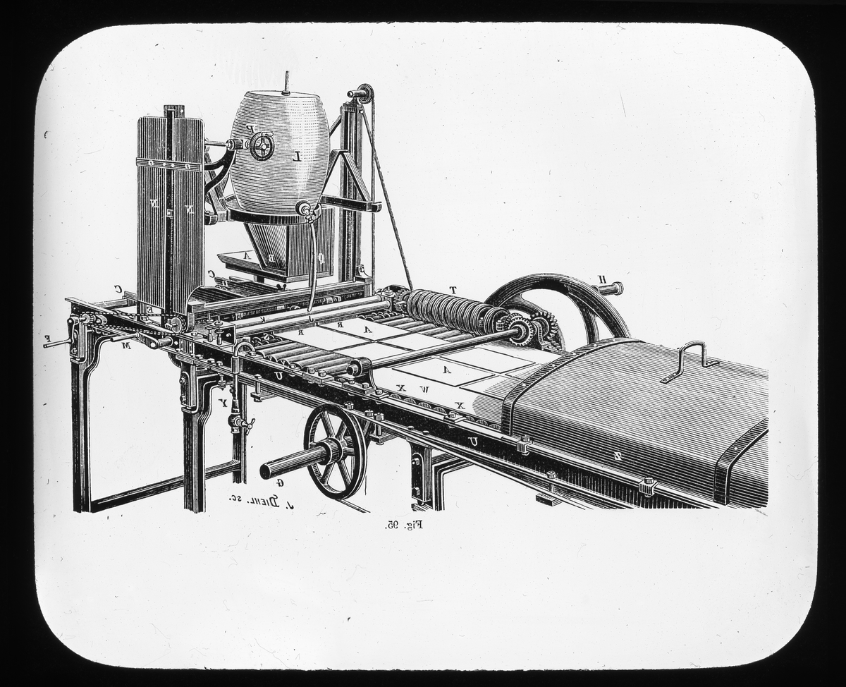 Skioptikonbild från Institutionen för fotografi vid Kungliga Tekniska Högskolan. Använd av professor Helmer Bäckström som föreläsningsmaterial. Bäckström var Sveriges första professor i fotografi vid Kungliga Tekniska Högskolan i Stockholm 1948-1958.