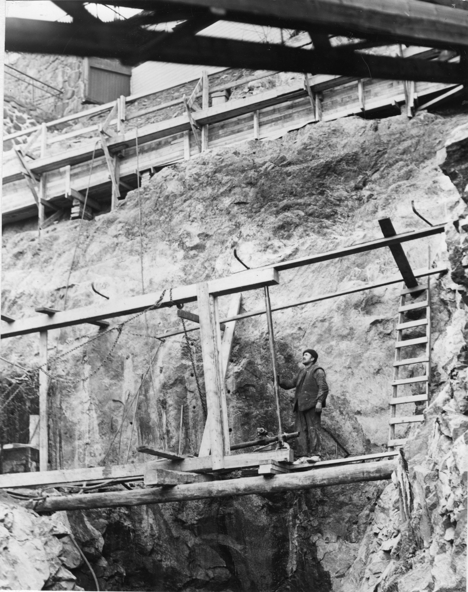 Titel: Byggandet av tunneln mellan Björns trädgård och Slussen under Södermalm, Stockholm.
