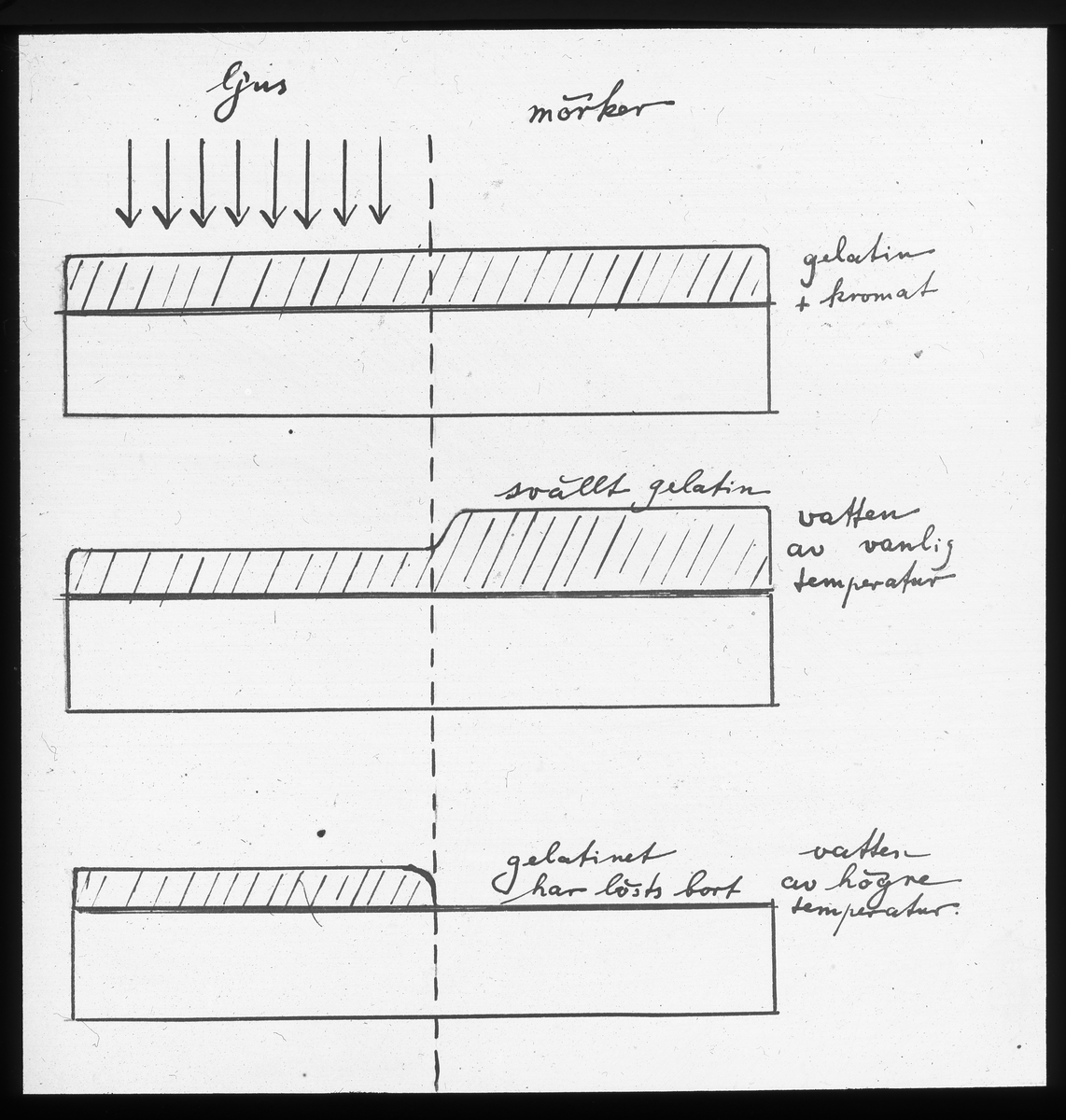 Skioptikonbild från Institutionen för fotografi vid Kungliga Tekniska Högskolan. Använd av professor Helmer Bäckström som föreläsningsmaterial. Bäckström var Sveriges första professor i fotografi vid Kungliga Tekniska Högskolan i Stockholm 1948-1958.