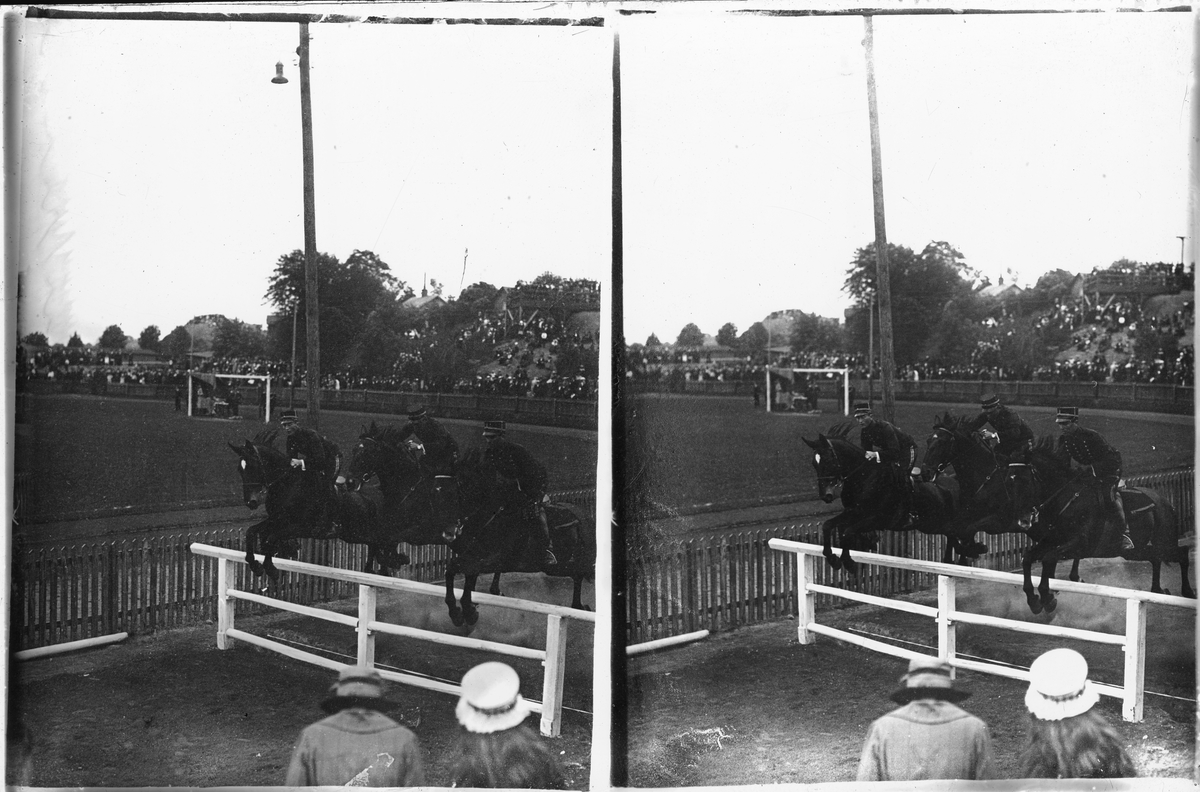 Stereonegativ med motiv från hästhoppning, okänd plats.