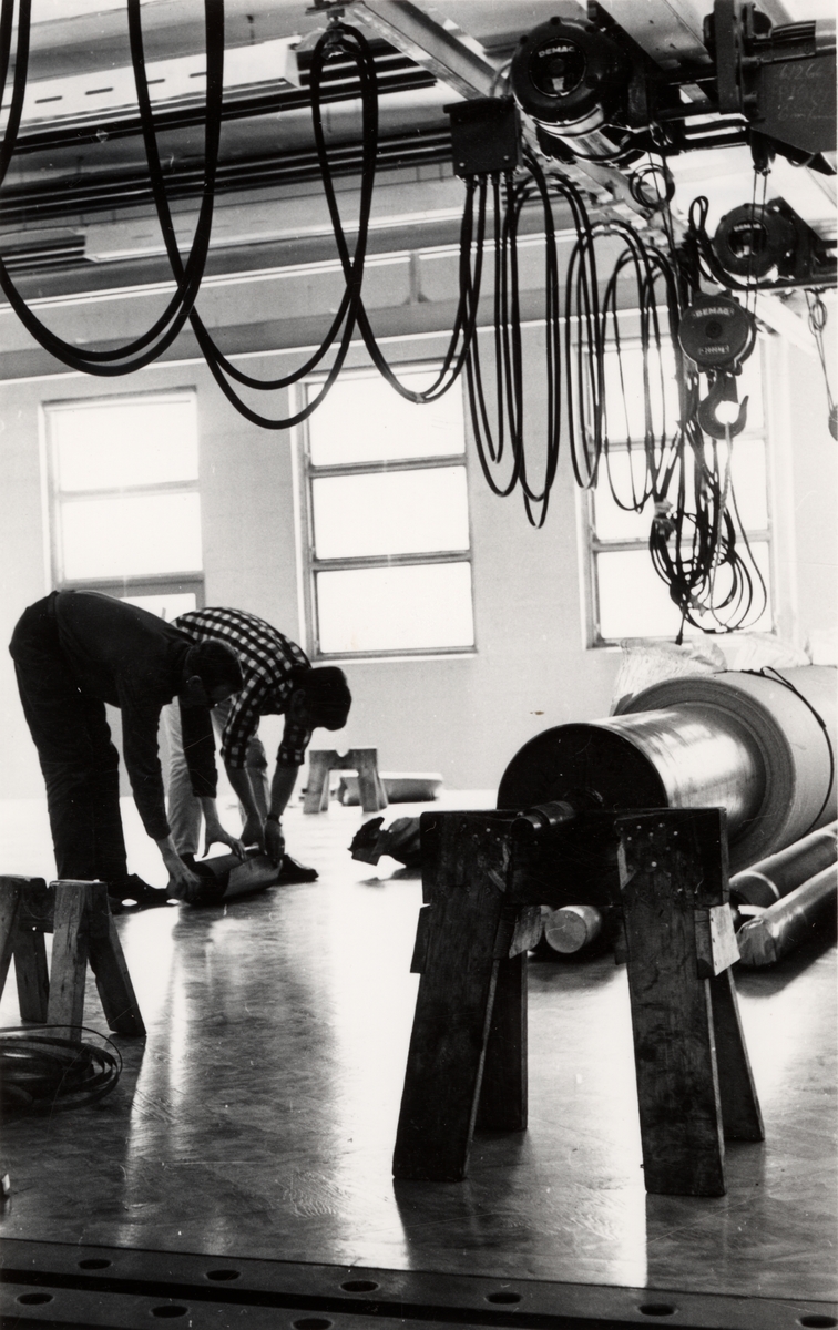 Hoprullning av mindre väv. Personen längstbort är Lars Johansson.