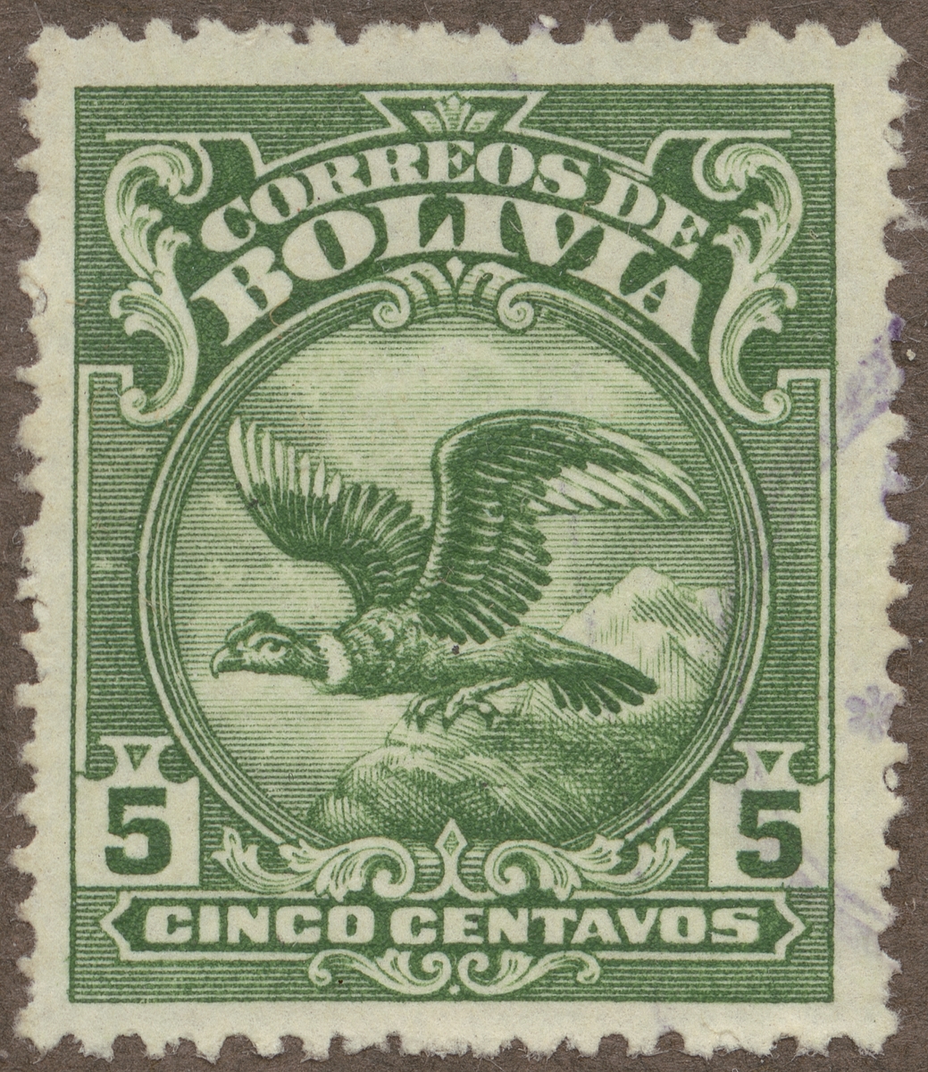 Frimärke från Bolivia, 1928. Motiv av Kondor, som symbol för flyget