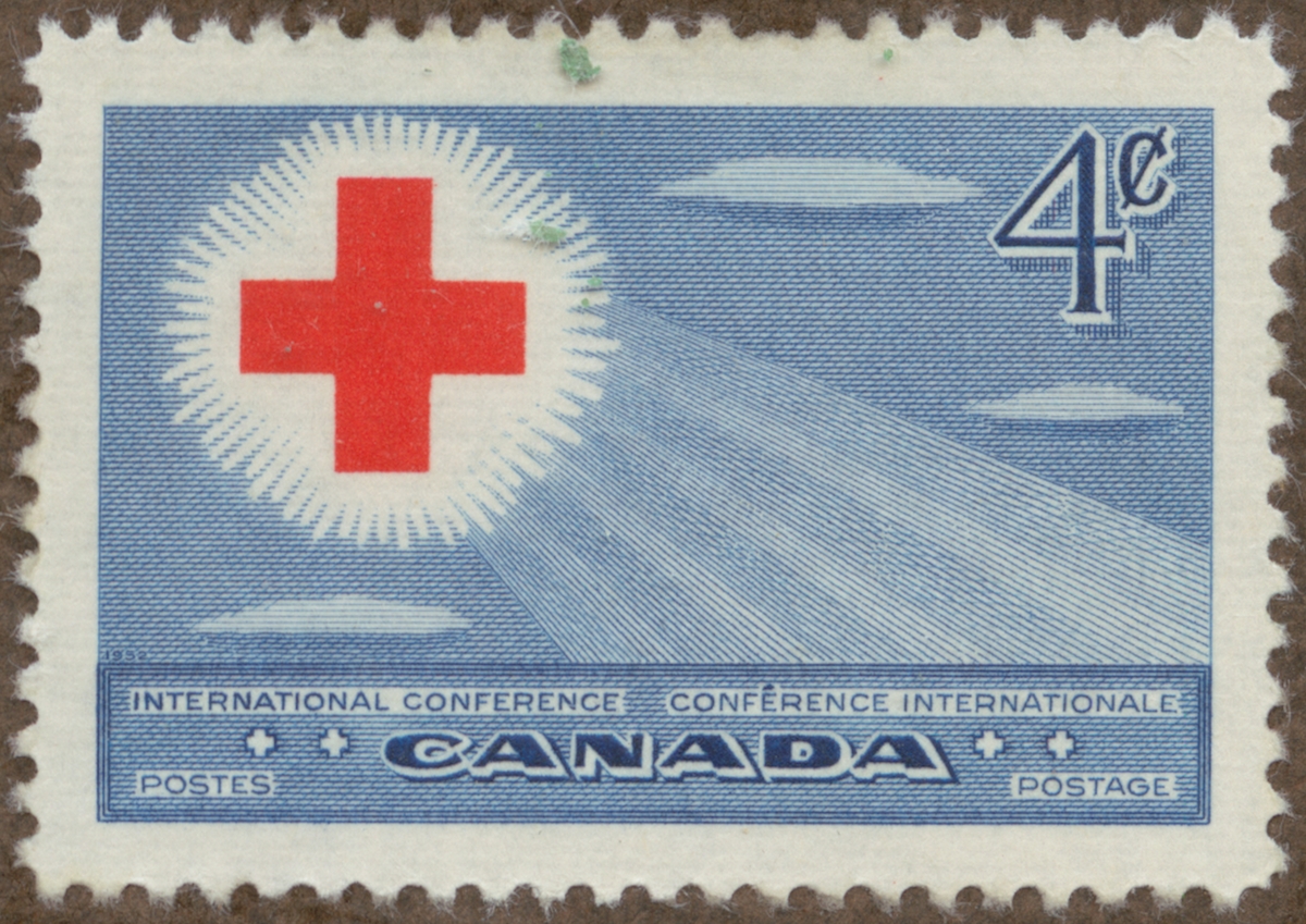 Frimärke från Canada, 1952. Motiv av Röda Kors märke på blå himmel. - Internationell konferens. i Toronto 1952.