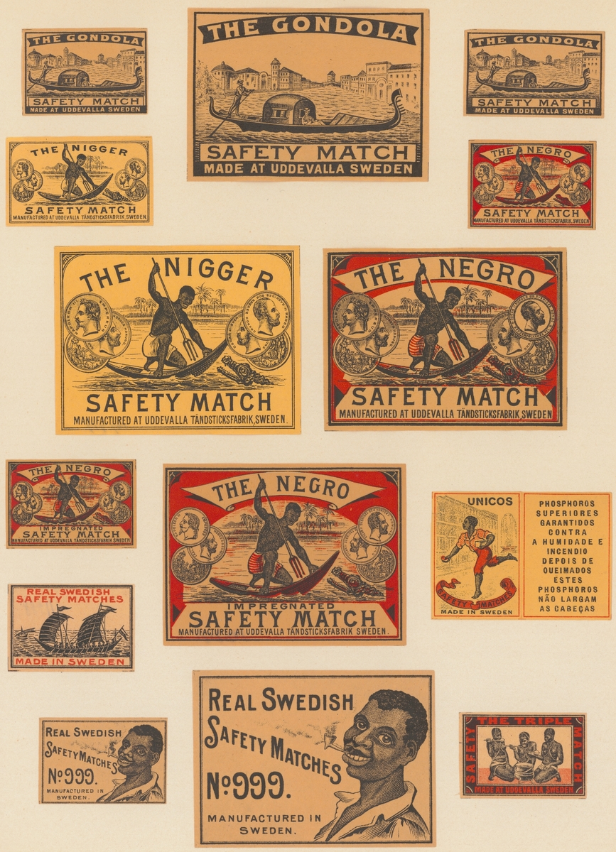 Etiketter för tändsticksaskar, från Svenskt Industri- och Handelsmuseum.