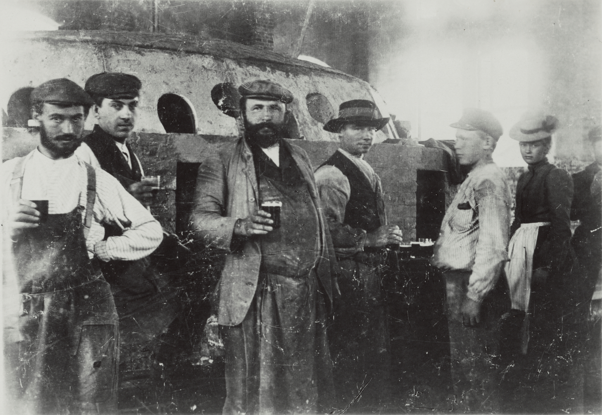 Siebertsugn 1902. Bayerska murare vilka uppförde ugnen. Ur album: Limmareds Glasbruk 1740-1902-1930.