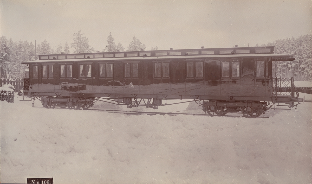 Tågvagn. 2:a och 3:e klass boggiepersonvagn. Ur album: Vagnfabriks Aktiebolaget i Södertälge.