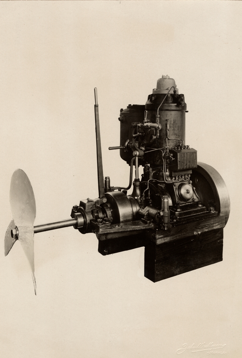 Omkastbar 15 hk. SVEA-motor. Tillverkad vid Motala Verkstad AB.