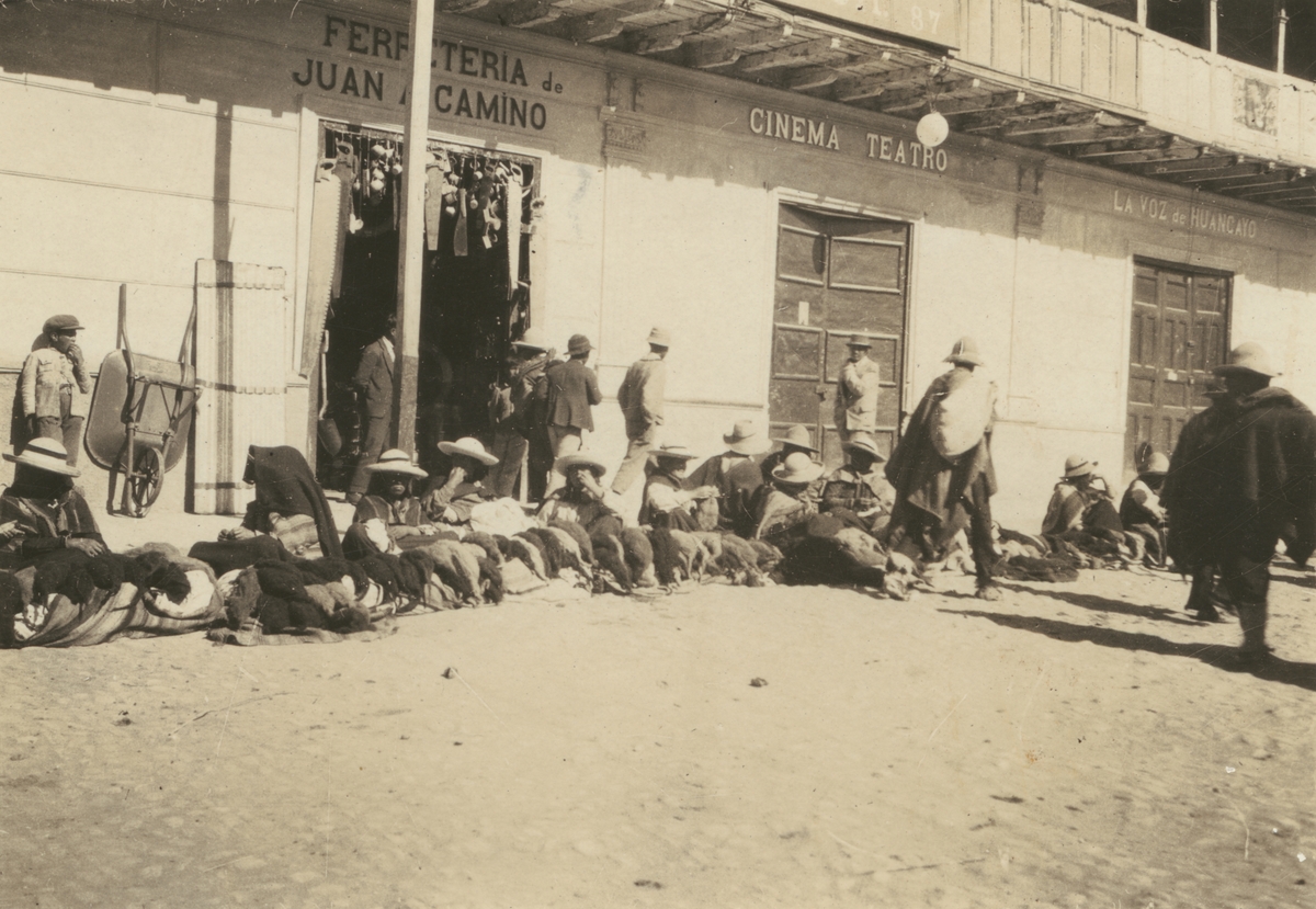 Fotografi från kuvert märkt med "Ernst Nordenskjöld". Motiv av marknad på gata i stad.