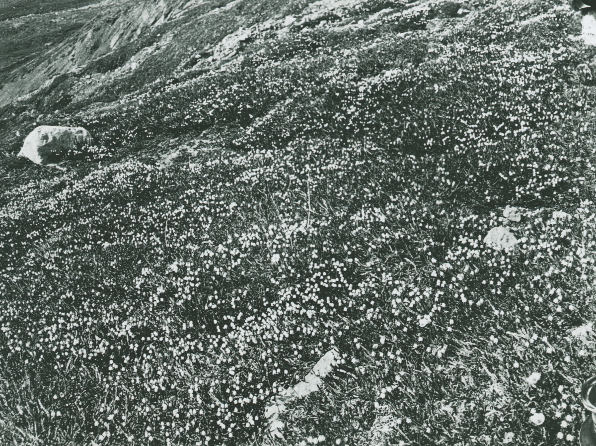 Fotografi från expedition till Spetsbergen. Motiv av blommor på bergssluttning.