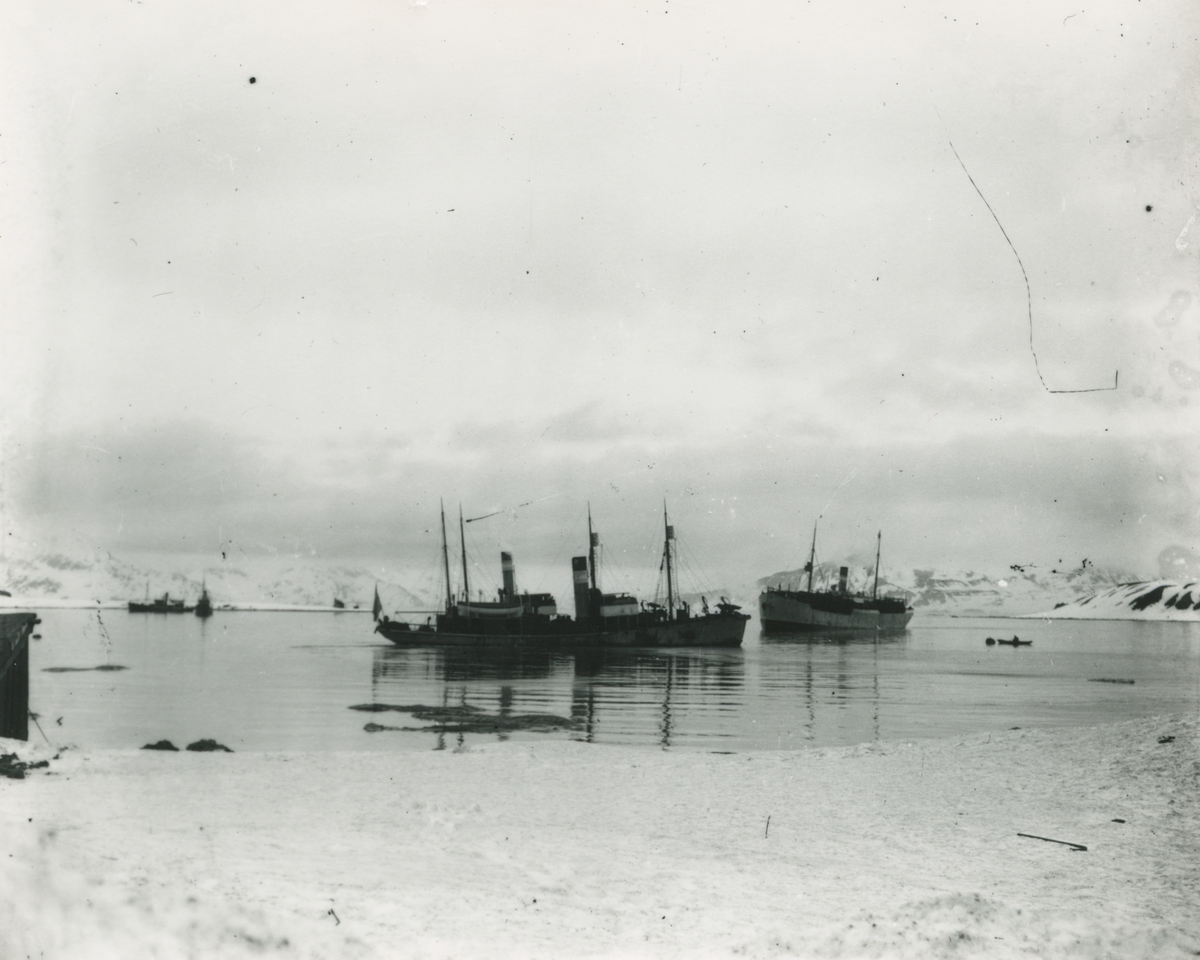 Bild från expedition i Antarktisområdet. Motiv av båtar i vatten, Sydgeorgien.