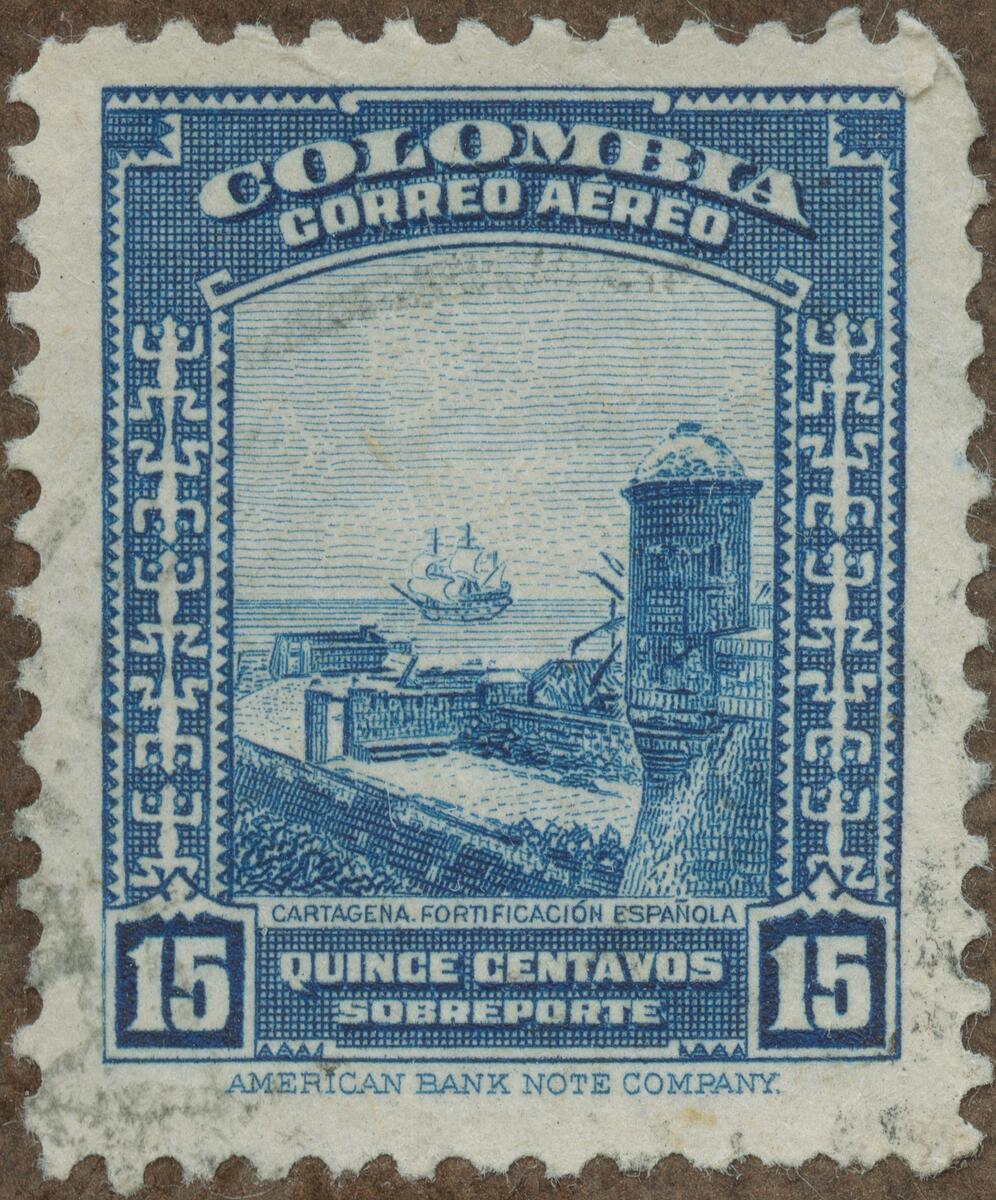 Frimärke från Colombia, 1941, Motiv av Spanska Fästningen i Cartagena