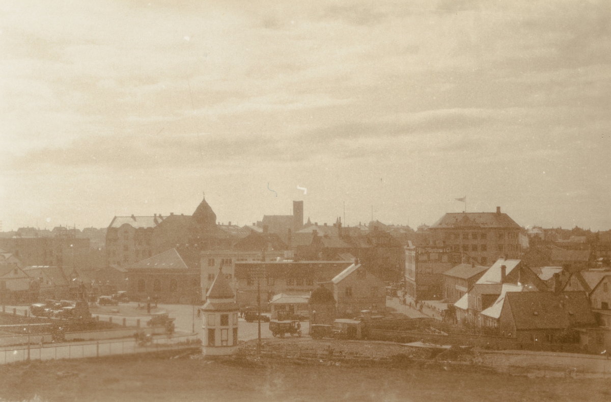Fotografi från Albin Ahrenbergs resa till Grönland 1929. Vy över stad.
