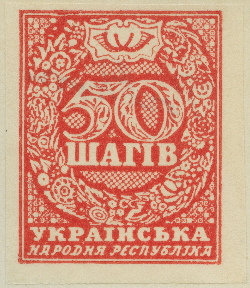 Frimärke från Ukraina, 1918. Motiv av Posthorn