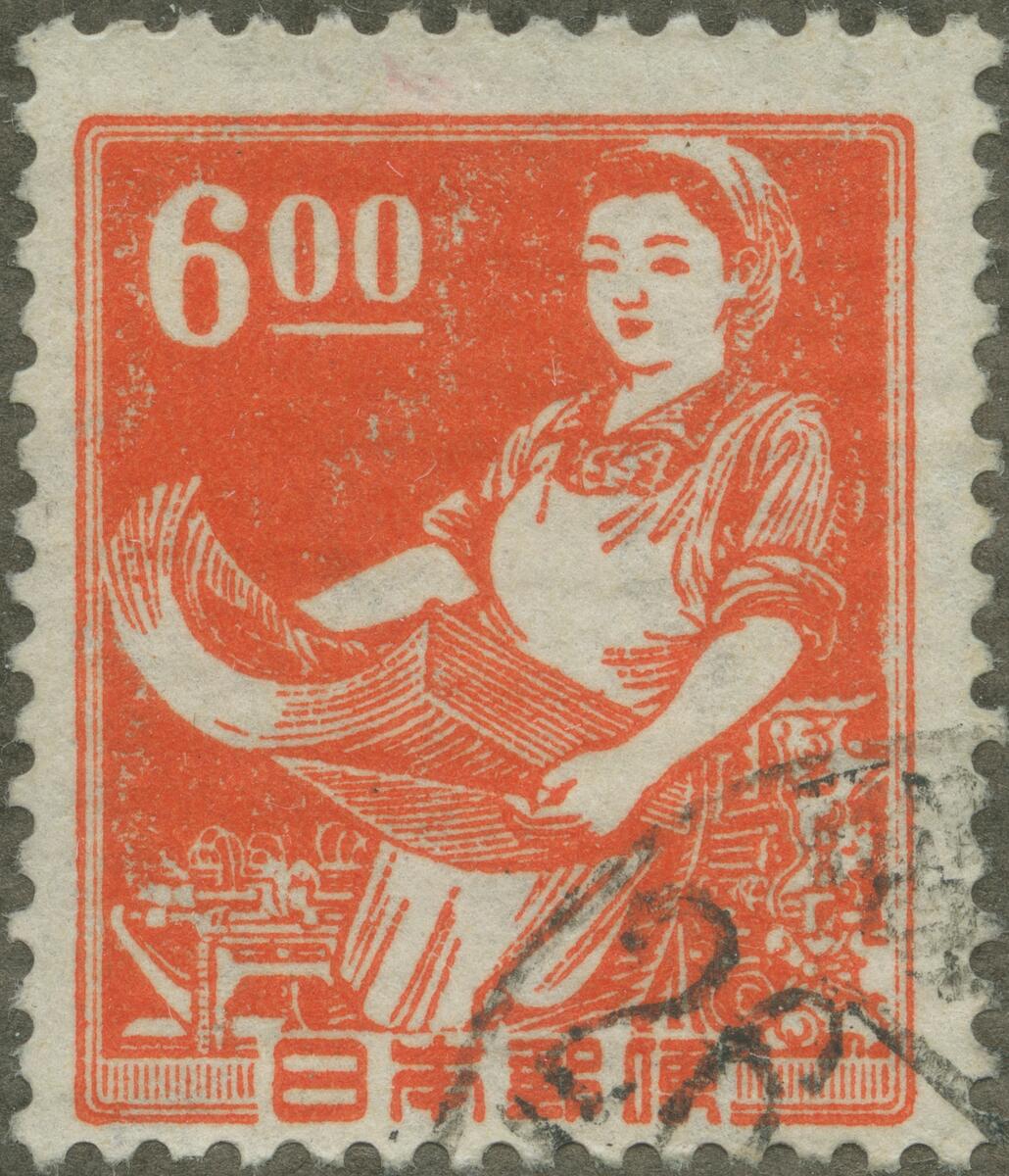 Frimärke från Japan, 1948. Motiv av Japansk boktryckeriarbeterska