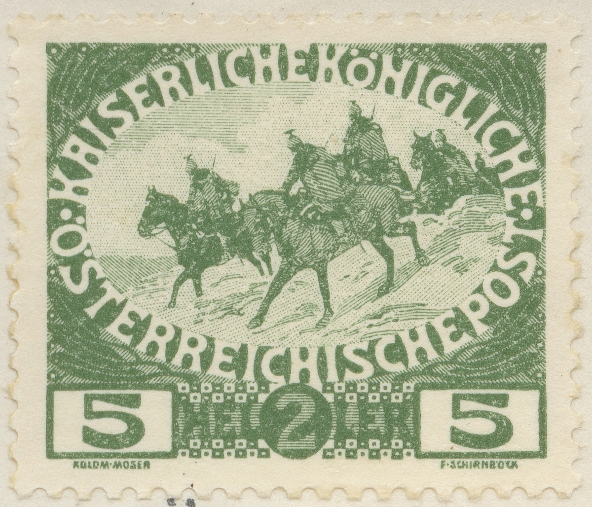 Frimärke från Österrike, 1915. Motiv av Österrikiskt kavalleri "Serie till förmån för föräldralösa krigsbarn: världskrig I.-"