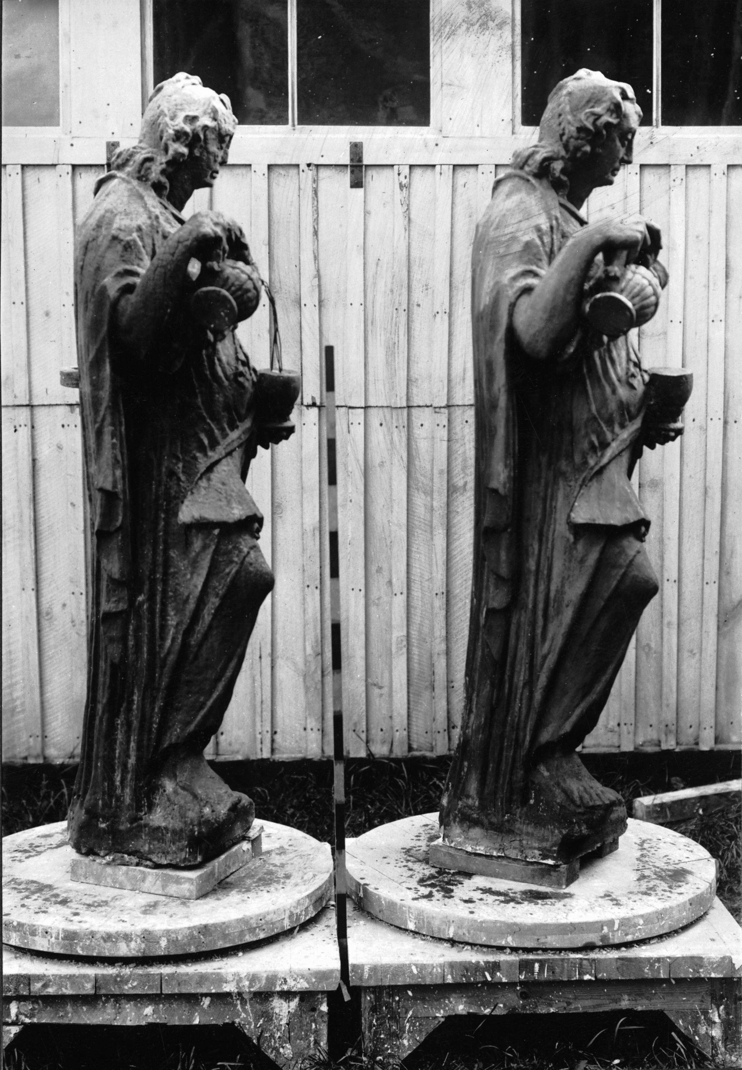 Skulptur föreställande Temperantia. Gipsavgjutninget och originalet.