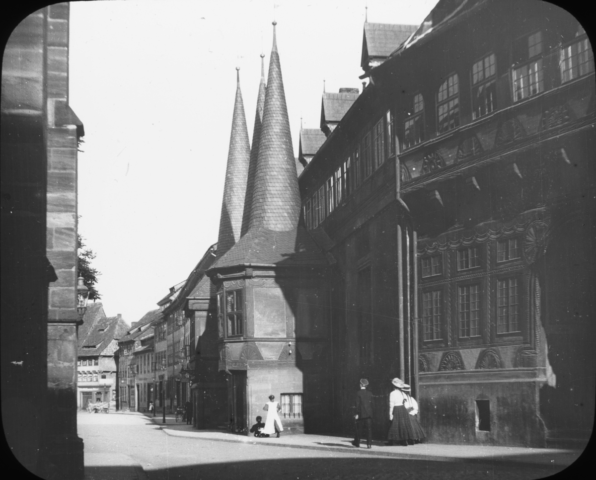 Skioptikonbild med motiv av rådhuset i Einbeck.