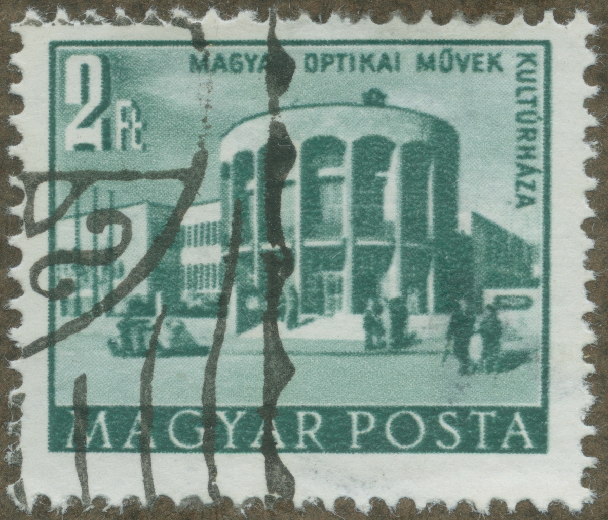 Frimärke ur Gösta Bodmans filatelistiska motivsamling, påbörjad 1950. Frimärke från Ungern, 1953. Motiv av Institutet för optik