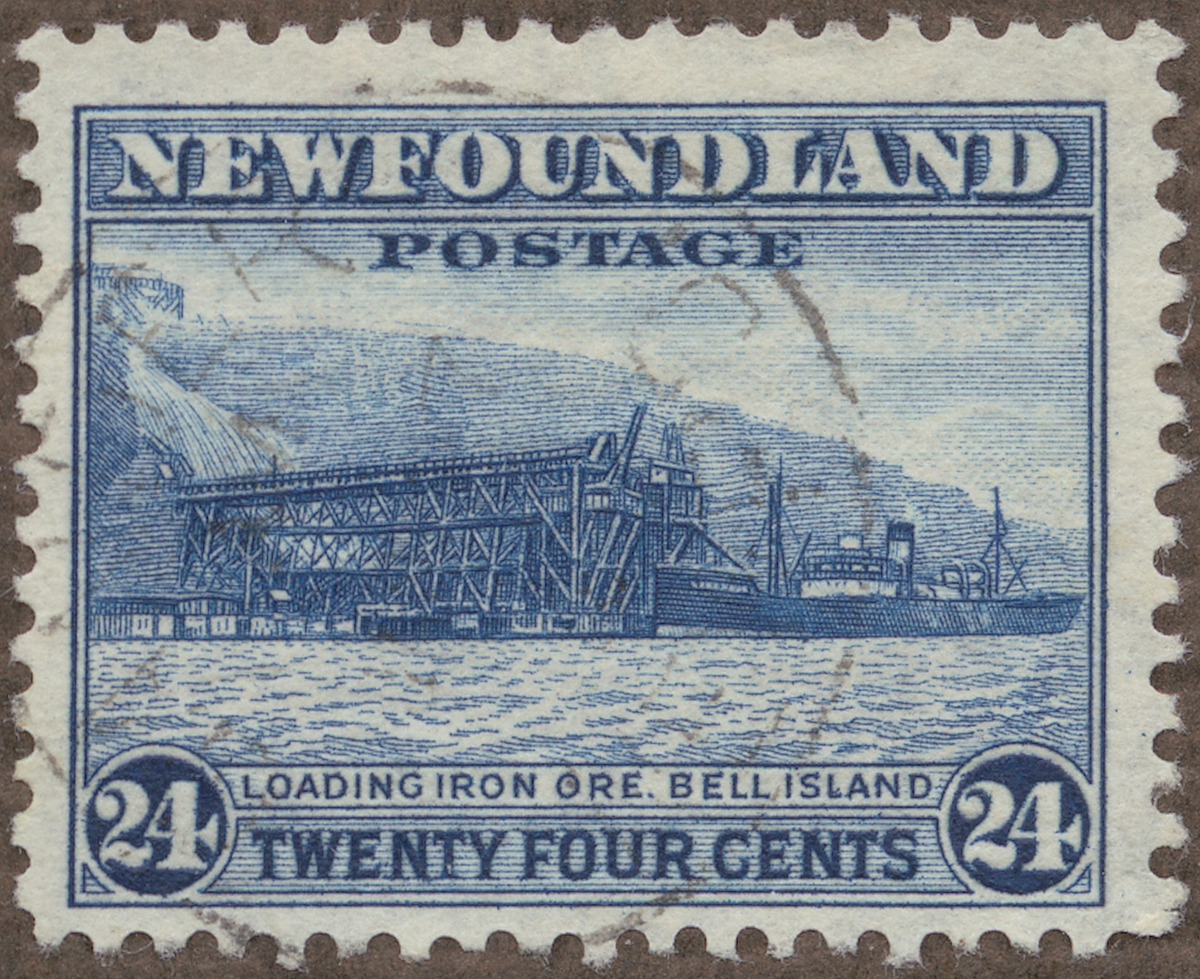 Frimärke från New Foundland, 1932. Motiv av Järnmalmslastning i fartyg: Bell Island, New Foundland.