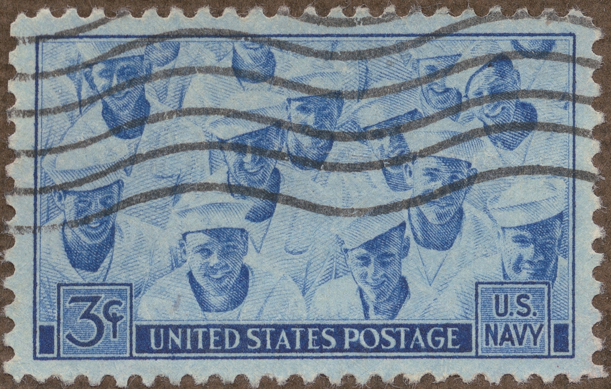 Frimärke från U.S.A., 1945. Motiv av Amerikanska sjömän: -Marinen till heder och ära- -Minne av amerikanska flottans insats i världskrig II: 1940-1945.
