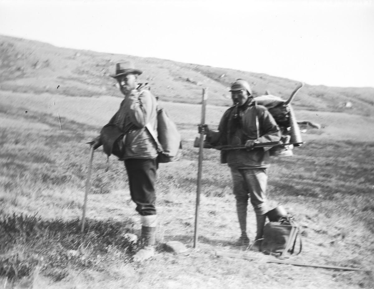 Fotografi från Grönland. Motiv av Otto Nordenskjöld med guide.