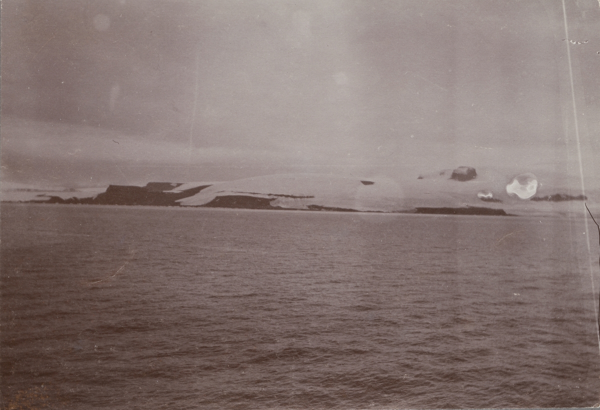 Fotografi från första svenska Antarktisexpeditionen 1901-1904. Vy över hav, himmel ich istäckt berg.
