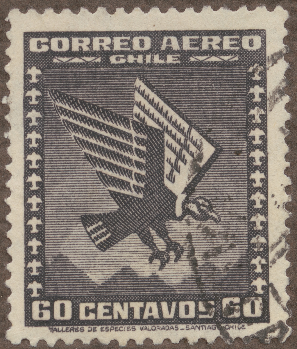 Frimärke från Chile, 1935. Motiv av Gam som symbol för flyget