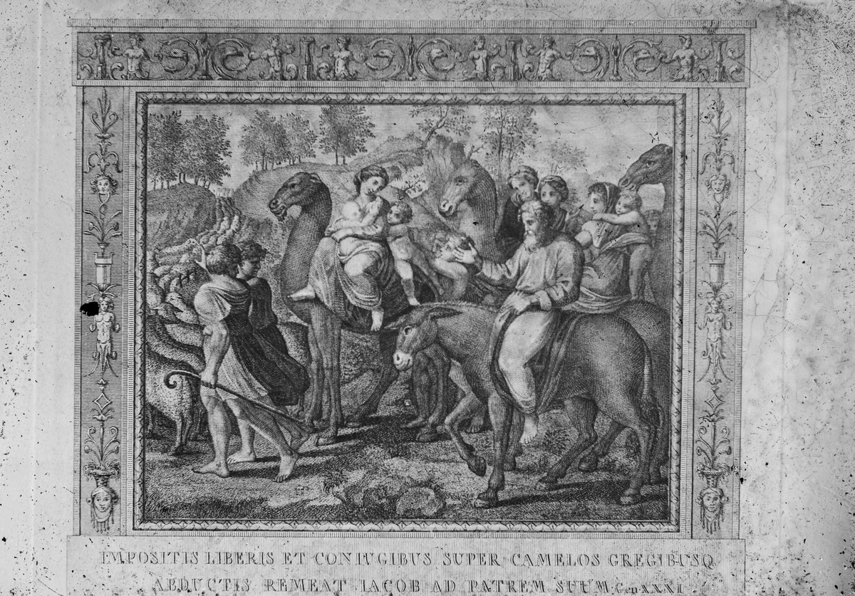 "Impositis liberis et coniugibus super camelos gregibusq abductis remeat lacob ad patrem suum, c en XXXI":