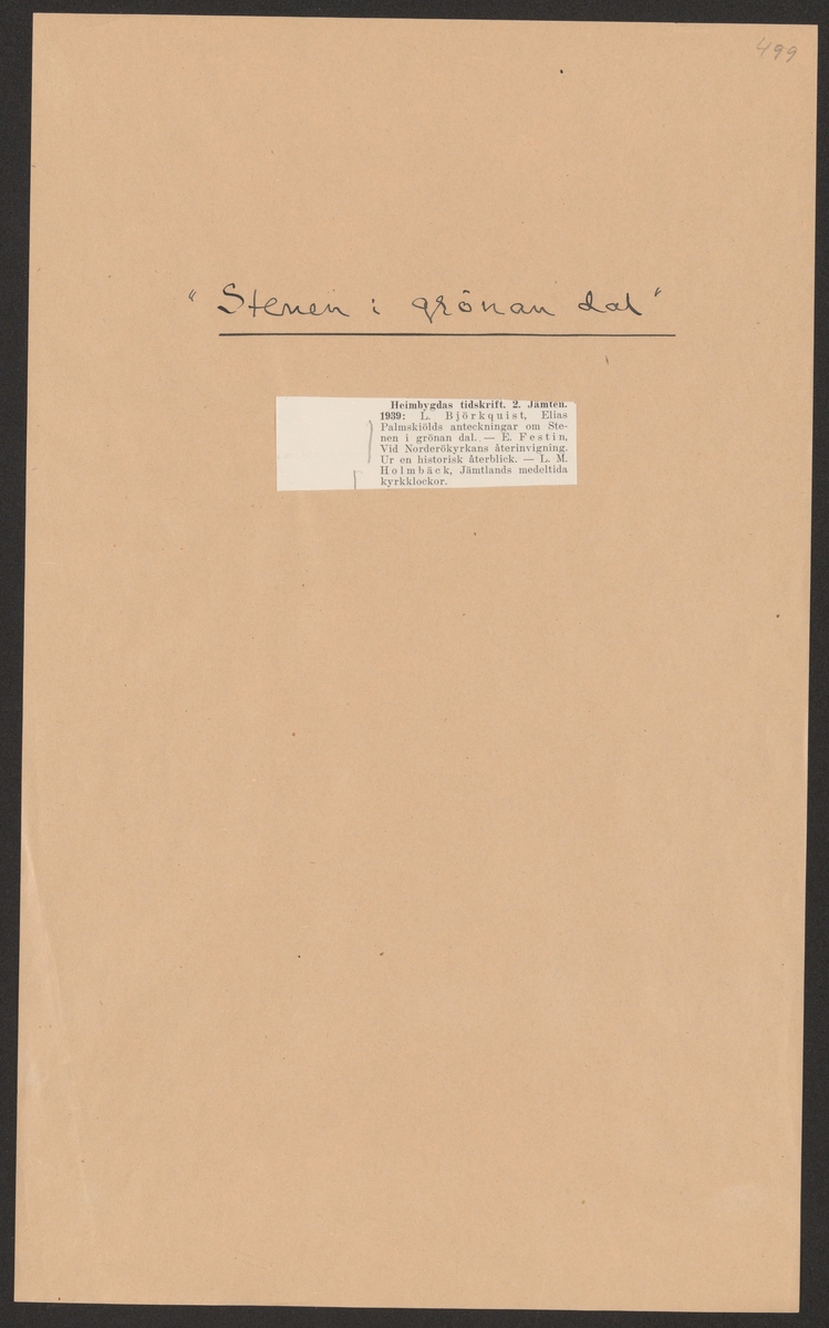 Titel: Diverse allmänt om bergshistoriskt material. Ämnesordnade handlingar av bergshistoriskt och bergstekniskt innehåll. Ur Carl Sahlins bergshistoriska samling.