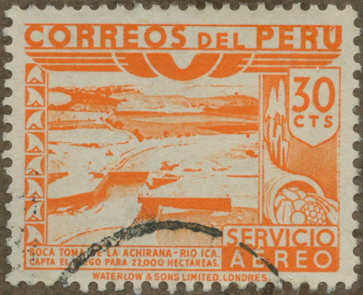 Frimärke från Peru, 1938. Motiv av Damm över Icafloden