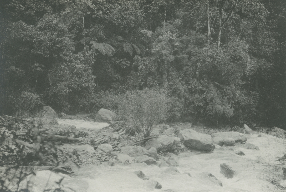 Fotografi från expedition till Peru 1920. Motiv av flod och tätbevuxen djungel.