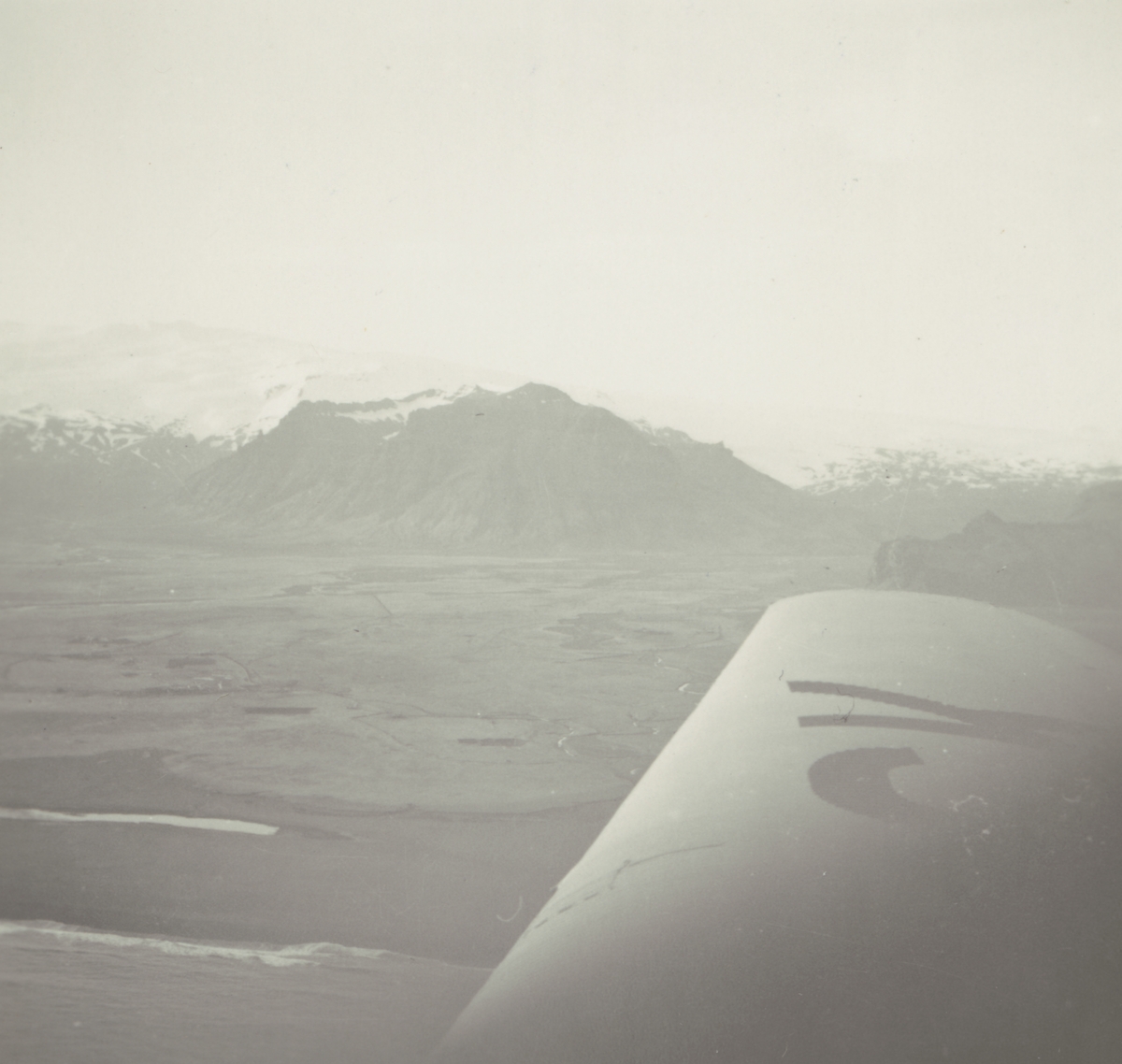 Fotografi från Albin Ahrenbergs resa till Grönland 1929. Vy över bergslandskap taget från flygplan.
