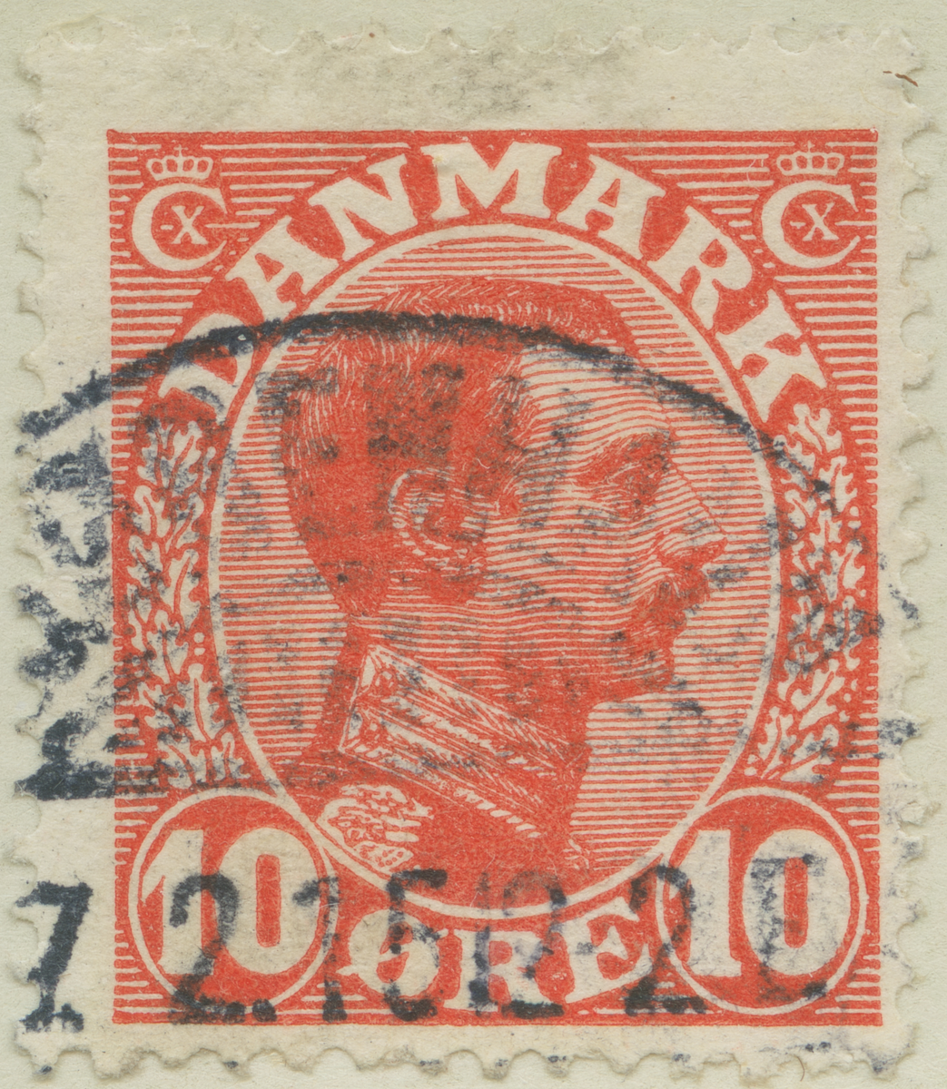 Frimärke från Danmark, 1913. Motiv av Monogram Christian X