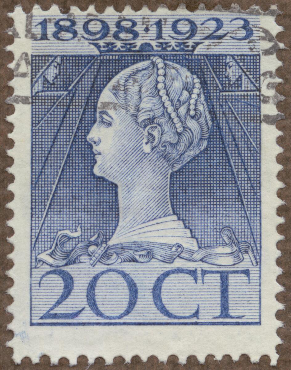 Frimärke från Nederländerna, 1923. Motiv av Symboler: Drottning Wilhelminas 25-års regering. 1898-1923