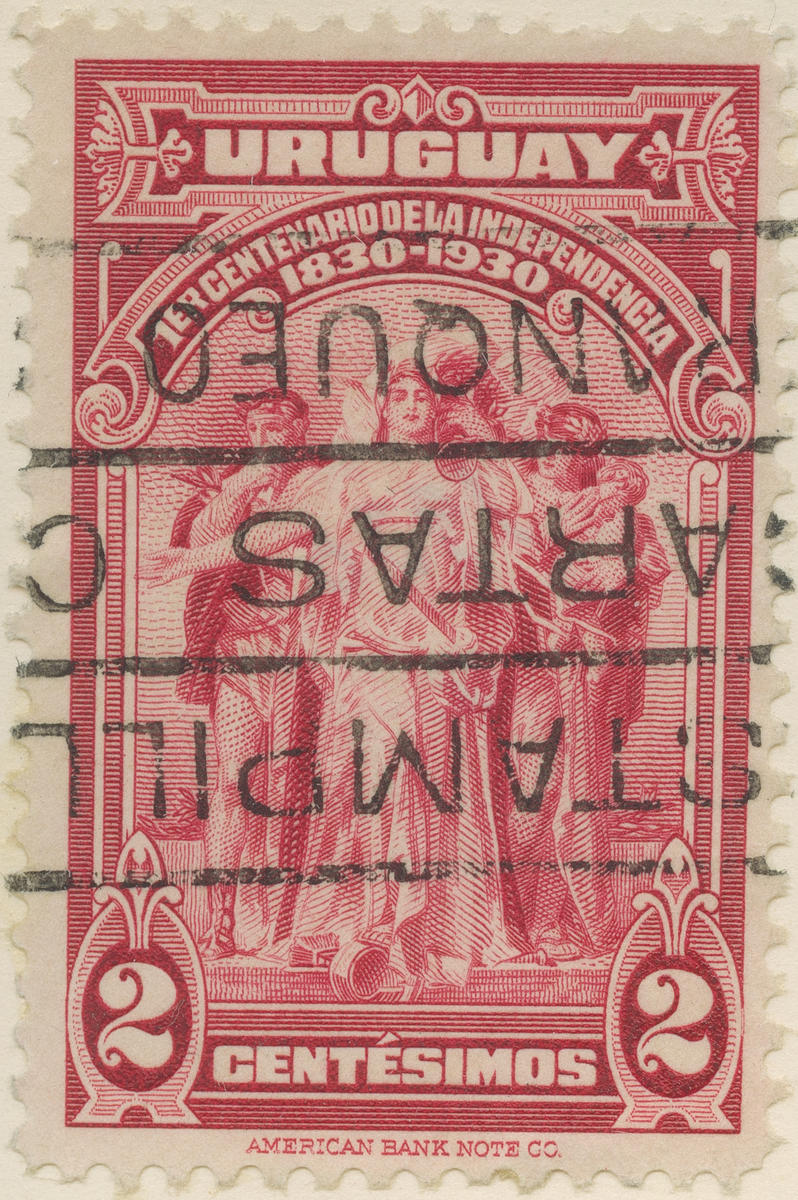 Frimärke från Uruguay, 1930. Motiv av Kvinnosymboler för Oberoendet 100-årsminne