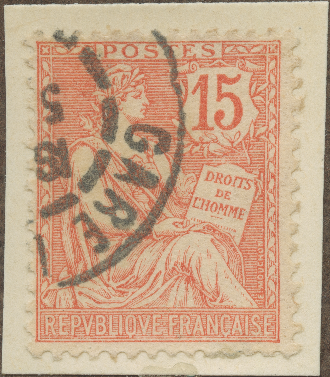 Frimärke från Frankrike, 1902. Motiv av Inskription: "Droit de l´homme" -De mänskliga rättigheterna-