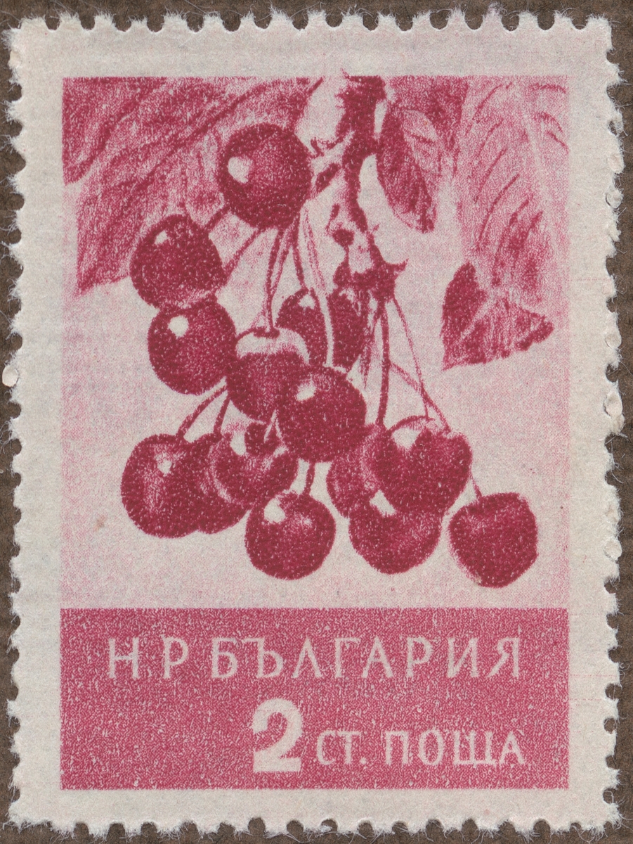 Frimärke från Bulgarien, 1956. Motiv av körsbär. "Frukt serie".