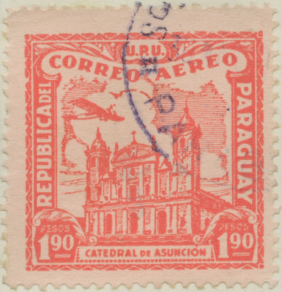 Frimärke från Paraguay, 1930. Motiv av katedralen Asunción.