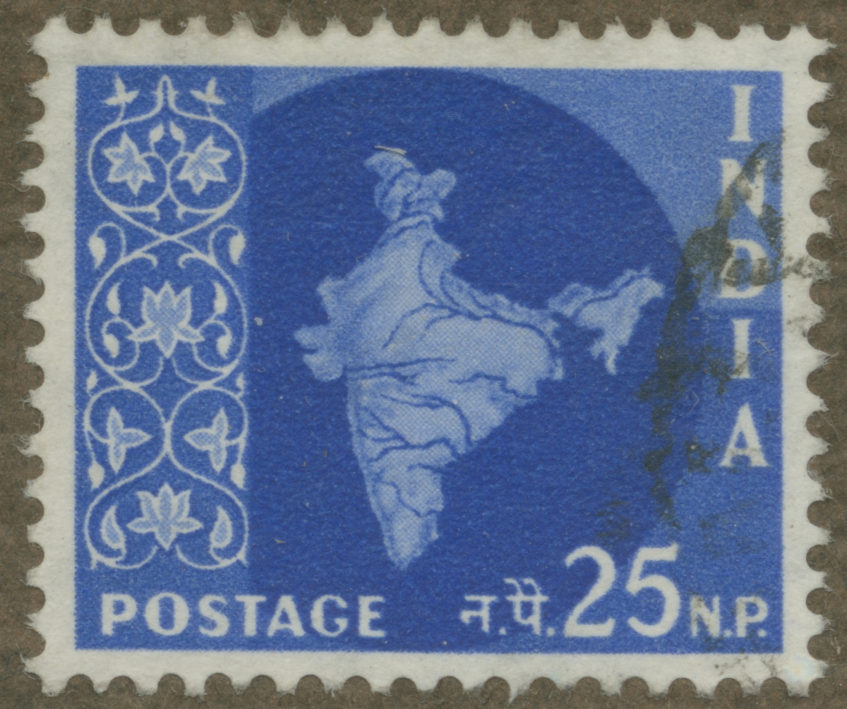 Frimärke från Indien, 1957. Motiv av karta över Indien.