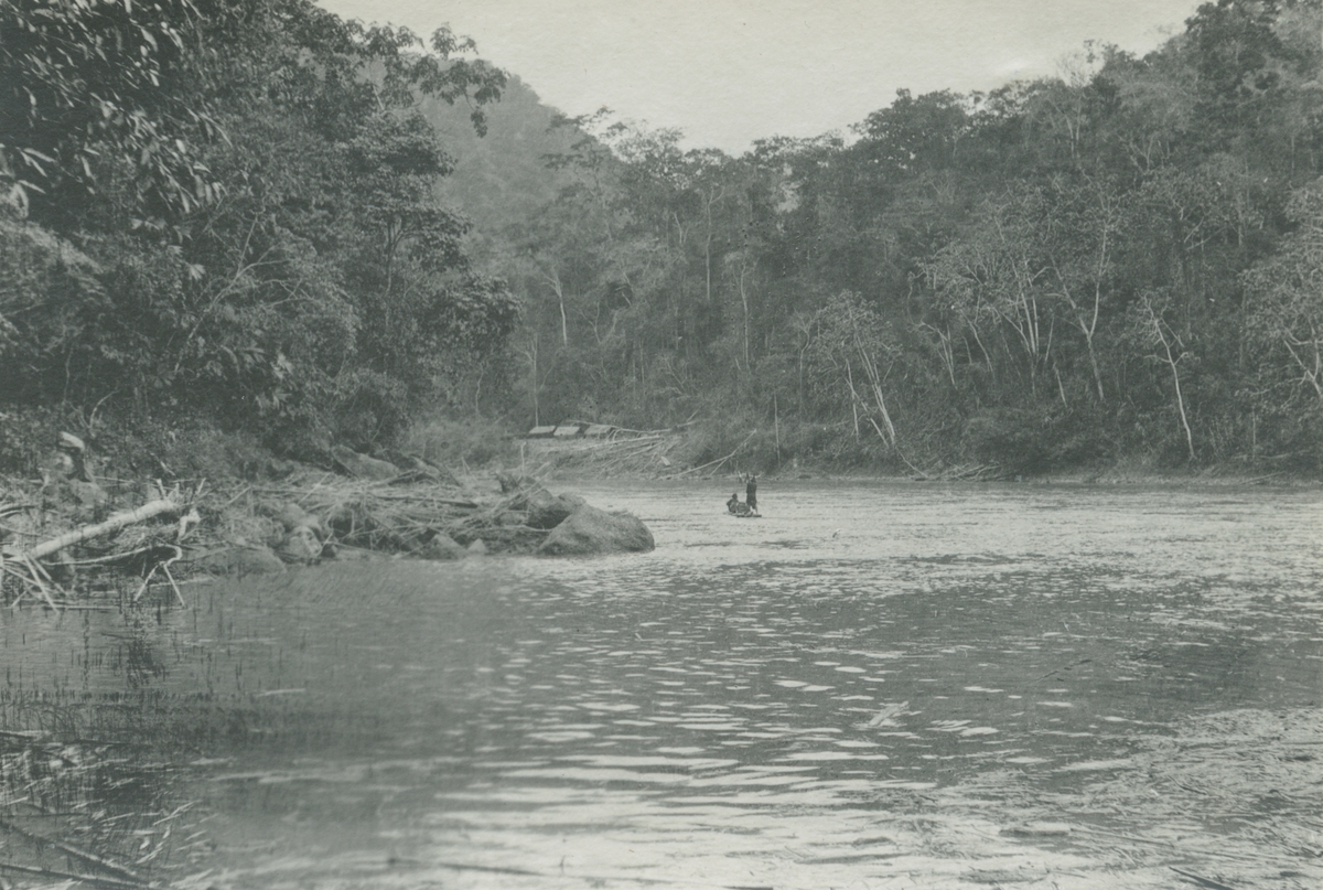 Fotografi från expedition till Peru 1920. Motiv av stor flod i djungel.