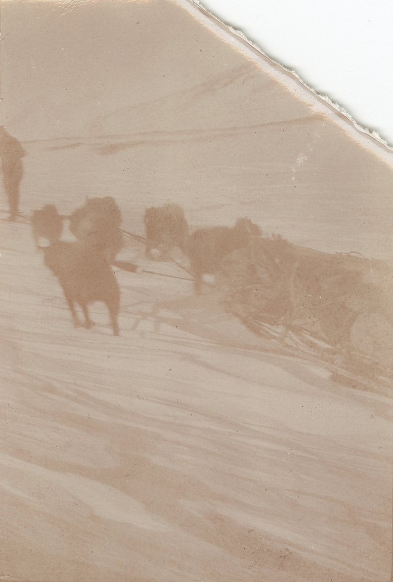 Fotografi från expedition till Spetsbergen. Motiv av hundspann i snölandskap.