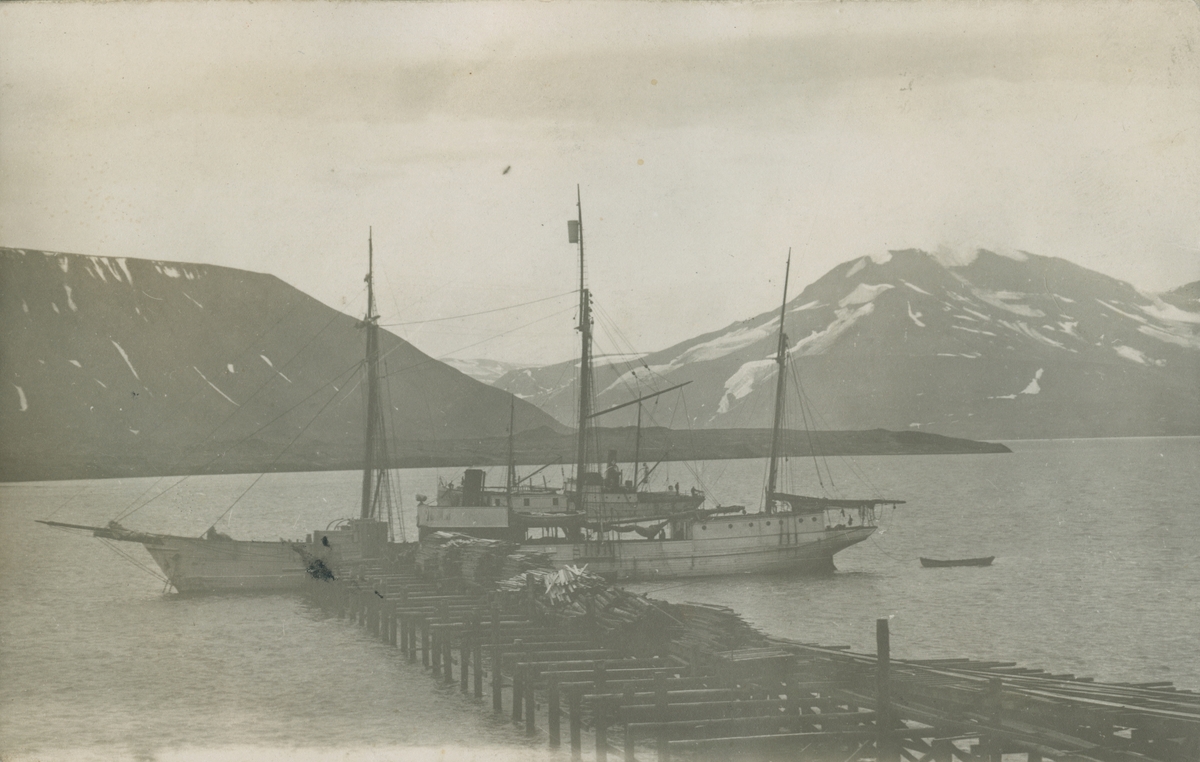 Fotografi från expedition till Spetsbergen. Motiv av fartyg vid Sveagruvans strand.