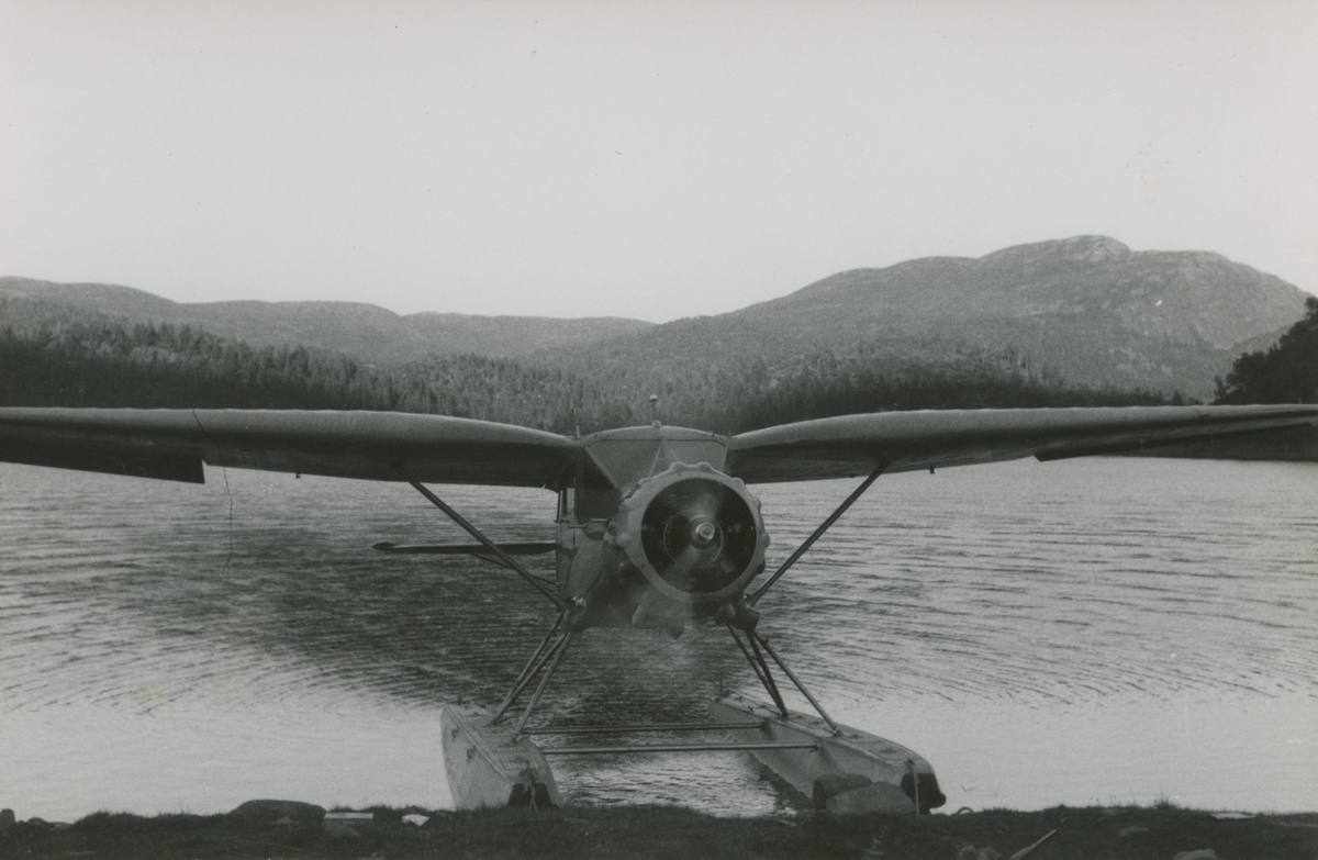 Fotografi från låda märkt Bernt Balchen. Balchen var norsk-amerikansk flygare, polarforskare och militär. Motiv av flygbåt i vatten framför berg.