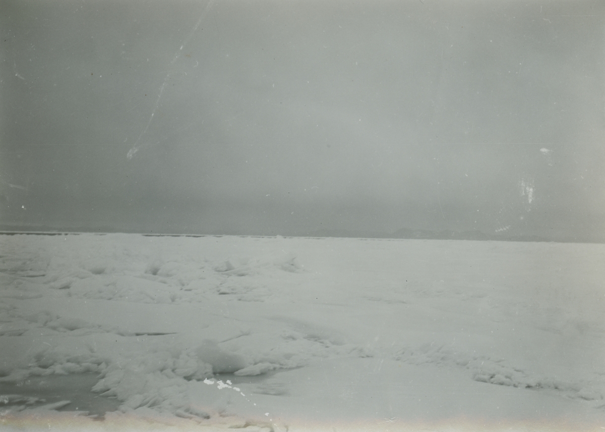 Fotografi från expedition till Östgrönland 1929. Dansk-svensk expedition under ledning av Lauge Koch. Svenska deltagare: Oscar Kulling och Helge Backlund. Vy över ett is- och snölandskap.